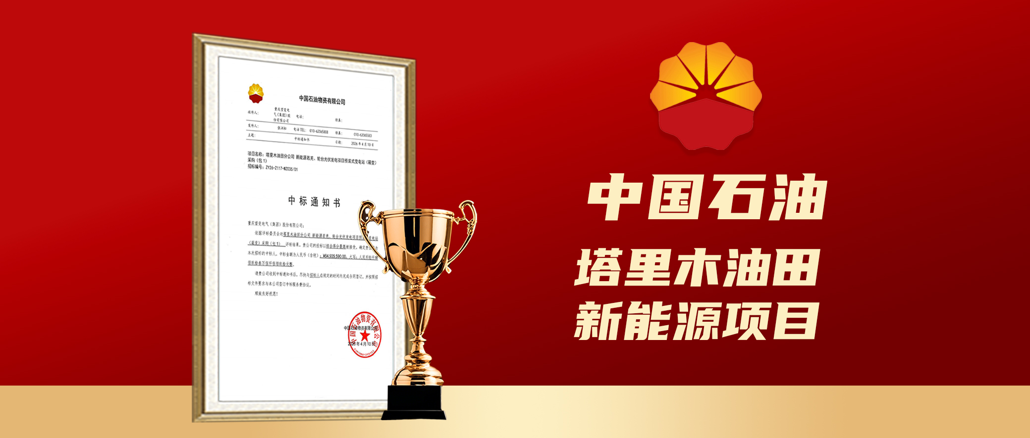 近日,重庆望变电气(集团)股份有限公司收到中国石油物资有限公司中标通知书,成功中标塔里木油田分公司新能源若羌、轮台光伏发电项目预装式变电站(箱变)采购(包1),中标金额6493.559万元。本次中标是公司深耕输...